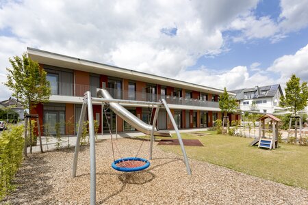 In der Kita werden 90 Kinder im Alter von 0 bis zu 7 Jahren in sechs Gruppen betreut:
