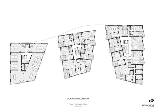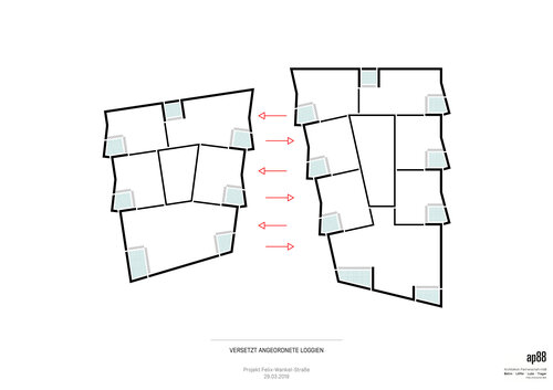 Die Wohnungsgrundrisse folgen derselben Strategie. Die Loggien klappen nach Süden auf und sind so zum Wohnraum positioniert, dass der Blick von den gegenüberliegenden Nachbargebäuden weg, Richtung Sonne und Grün gelenkt wird.